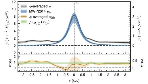 So there you have it: a fully differentiable, continuous model of dark matter within the local volume around the Sun, looking through the dust in the Galaxy. This is completely data driven, using machine learning to solve a physics-inspired neural network (a PINN), whose loss function is just a statistical mechanics equation. In the future, we want to get closer to the Galactic Center, and understand more what the signatures of real disequilibrium in our results would look like. And if anyone has a better model of the baryons, that would really help.